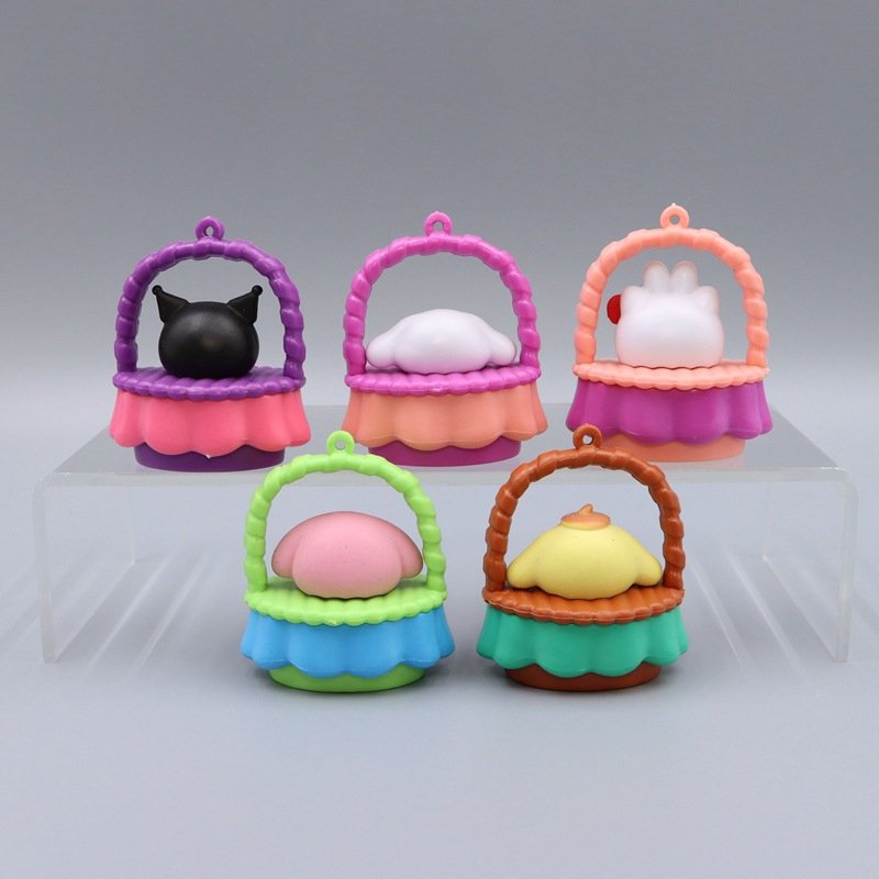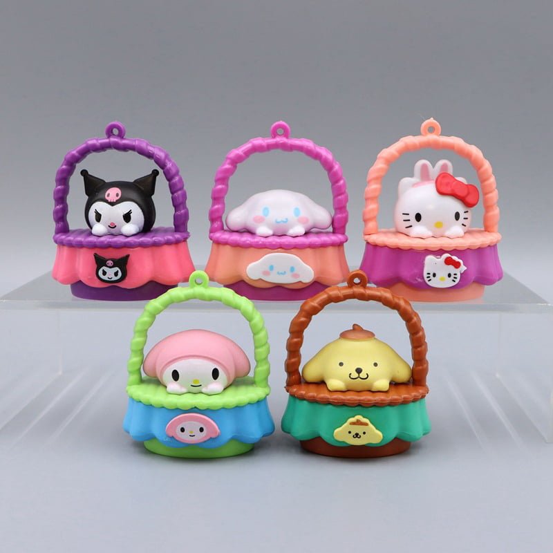 6pcs 5cm Sanrio Creative Basket Baby Sanrio Kuremirumimele figurines Kaidi Yugui Dog PVC Figure
